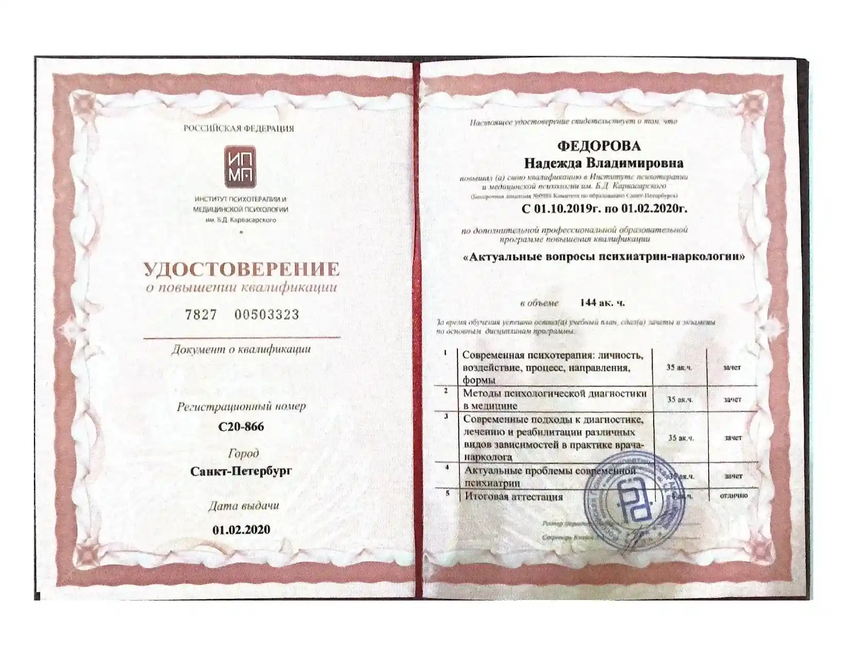 • Институт психотерапии и медицинской психологии РПА им. Б.Д. Карвасарского г. Санкт-Петербург.